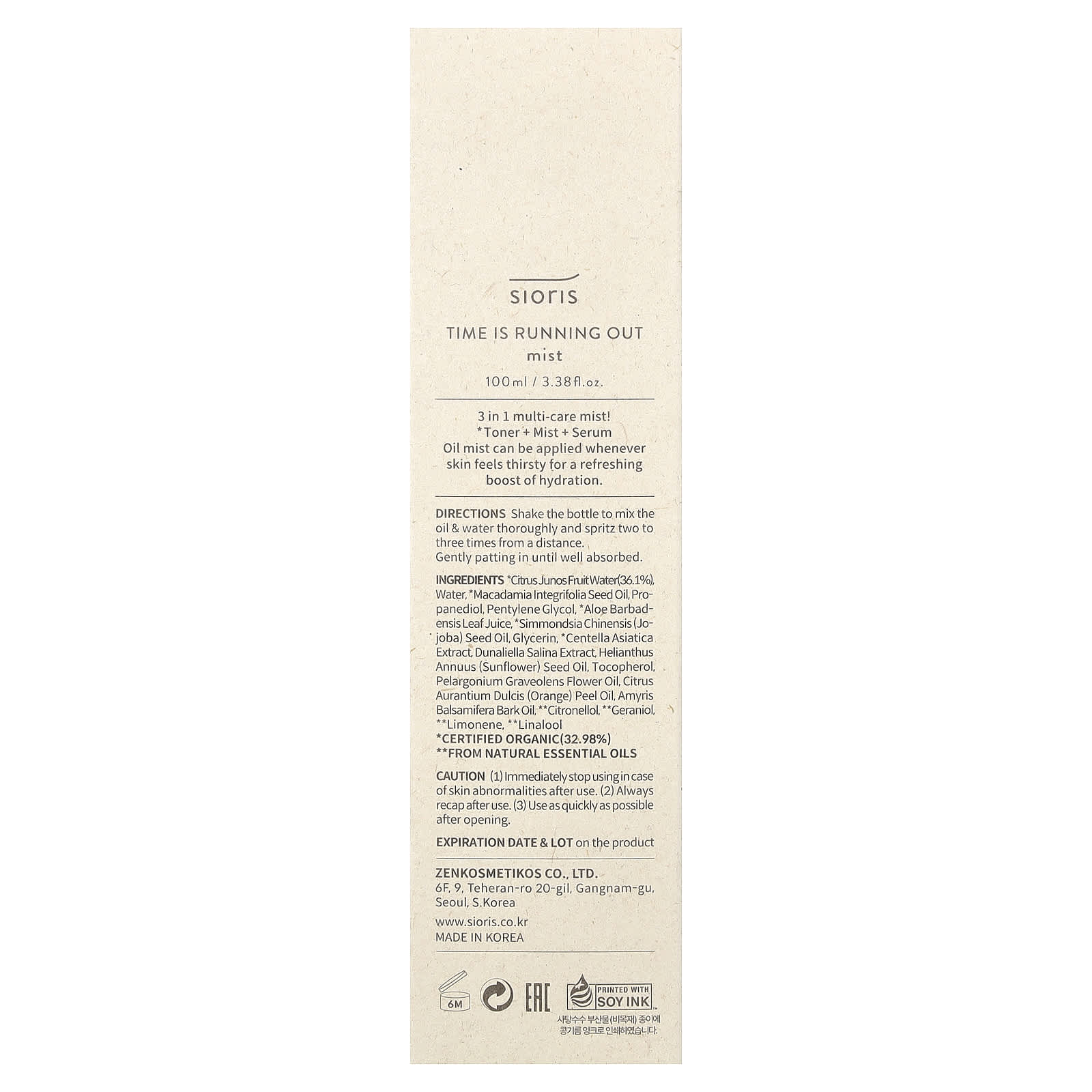 Sioris O Tempo de Névoa está acabando 100 ml (338 fl oz) – Sioris Beleza Hidratantes Faciais e Cremes Bruma facial Hidratantes e Cremes K-Beauty.