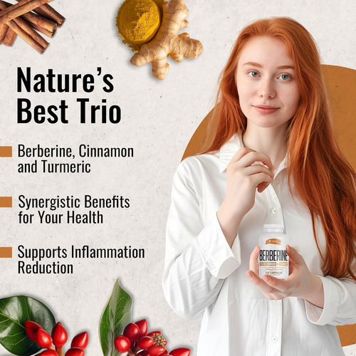 • ABSORÇÃO MELHORADA – Nosso suplemento de Berberina 500 mg foi projetado para absorção máxima, garantindo que você aproveite ao máximo, e sua fórmula fortificada fornece os benefícios da Berberina, Canela do Ceilão e Cúrcuma de forma eficaz