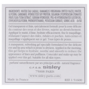 A balm formulated to smooth and moisturize the eye contour and lips. This transparent gel smoothes and moisturizes, helps reduce under-eye puffiness, helps correct wrinkles and fine lines, fights skin dryness, and provides softness and freshness.