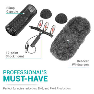 Sistema de proteção contra vento e vibração Movo BWS1000 Blimp para microfones de espingarda – Possui suporte interno de choque de 12 pontos, cabo XLR integrado, pára-brisa Furry Deadcat e alça com acessório de lança – INDISPENSÁVEL PARA PROFISSIONAIS: possui uma cápsula Blimp, suporte antichoque de 12 pontos e pára-brisa “Deadcat” para redução de ruído, perfeito para entrevistas de campo, produção profissional e muito mais – Design universal: serve para a maioria dos disparos microfones de pistola de até 15" (38 cm) de comprimento, incluindo Rode NTGs, Sennheiser MKH-416, Audio-Technica AT875R e muito mais – SEM RUÍDO: tem zíper de grandes dimensões” O para-brisa “deadcat” se encaixa perfeitamente no dirigível, reduzindo ainda mais o ruído do vento e da vibração em até 40 dB – FÁCIL DE MANUSEAR: tem uma alça emborrachada e possui roscas de 1/4" e 3/8" para fixação em poste ou tripé, perfeito para captura de áudio de corrida e tiro – PROJETADO EM LOS ANGELES: Movo, carrega uma variedade completa de equipamentos inovadores para criadores de conteúdo e apoia orgulhosamente a comunidade de criação de conteúdo.