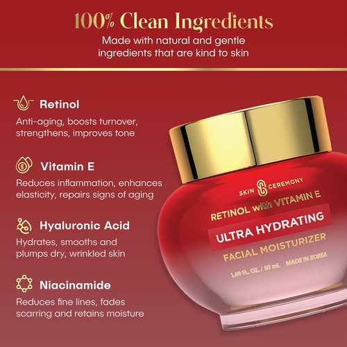 Transforme sua rotina diária em um belo ritual. Para dar um toque de luxo aos seus cuidados com a pele, Skin Ceremony é uma coleção de elixires diários que proporcionam resultados incríveis. Nossos produtos combinam ciência avançada da pele com ingredientes simples e naturais para revelar uma pele hidratada e com aparência mais jovem em todas as idades. Nosso tratamento com creme para os olhos com ácido hialurônico e colágeno é um tratamento para os olhos profundamente hidratante para prevenir sinais de envelhecimento e fadiga na delicada área dos olhos. O ácido hialurônico hidratante se liga à umidade natural da pele, enquanto o colágeno ativo ajuda a reduzir linhas finas, bolsas sob os olhos e inchaço. Dimensões: 1,69 FL. OZ. 50mL Feito na Coréia Cuidados: Apenas para uso externo. Evite com os olhos. Interrompa o uso se ocorrer irritação. Mantenha fora do alcance das crianças. Aprovado por milhares de clientes. Clique em “Adicionar ao carrinho” e compre hoje mesmo em uma marca confiável! • EXCELÊNCIA COREANA EM CUIDADOS COM A PELE: Experimente o poder transformador do Hidratante Facial Ultra-Hidratante Skin Ceremonys Retinol & Vitamin E. Fabricado na Coreia, este produto premium combina cuidados de pele coreanos de última geração com ingredientes luxuosos e eficazes. • REVITALIZE A SUA PELE: Repleto de Retinol, este hidratante promove a renovação celular, combate as rugas e melhora o tom e a textura da sua pele. Diga adeus aos sinais de envelhecimento e olá a uma tez mais jovem e radiante. • FÓRMULA RICA EM ANTIOXIDANTE: Infundida com vitamina E, nossa fórmula oferece potentes benefícios antioxidantes e antiinflamatórios. Fortalece a pele, aumenta a elasticidade e combate linhas finas e ressecamento para uma pele mais suave e saudável. • GARANTIA DE BELEZA LIMPA: Desfrute de tranquilidade com nosso compromisso com a beleza limpa. Este hidratante não contém parabenos, ftalatos e OGM e é 100% vegano e livre de crueldade. Mime a sua pele com um produto que se alinha aos seus valores. • EMBALAGEM ELEGANTE E AVALIAÇÕES DELICIOSAS: Este hidratante não apenas oferece resultados excelentes, mas também vem em uma embalagem lindamente projetada. Nossos clientes adoram, e você também vai adorar – junte-se ao grupo de usuários satisfeitos que elogiam sua eficácia e qualidade. • GARANTIA DE DEVOLUÇÃO DO DINHEIRO: Se você tiver algum desafio ao usar o Hidratante Skin Ceremony, entre em contato a qualquer momento para obter ajuda de nossos especialistas em cuidados com a pe… Color: Retinol y vitamina E Marca: Skin Ceremony Dimensiones: 0.11 x 0.08 x 0.07mts. Peso del Producto: 0.24 Kilogramos. Peso de Envio: 0.24 Kilogramos. Modelo: B0BZ5RPQM8