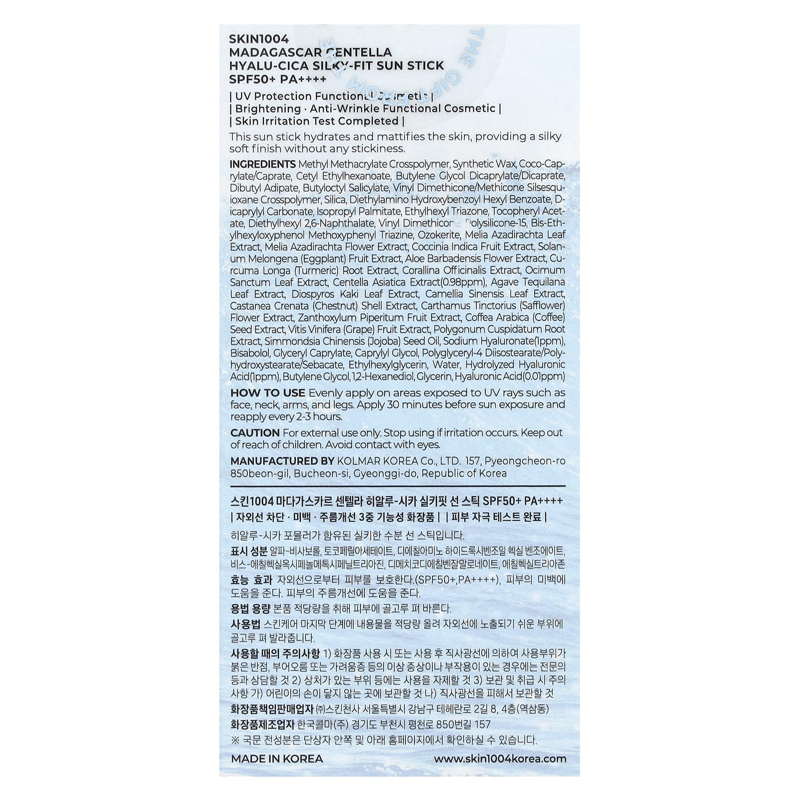 SKIN1004 Madagascar Centella Hyalu-Cica Silky-Fit Bastão Solar FPS50+ PA++++ 20 g (07 oz) – SKIN1004 Cuidados Pessoais Protetor Solar Protetor solar facial Beleza Beleza por Ingrediente Cuidado para a pele com Centella.