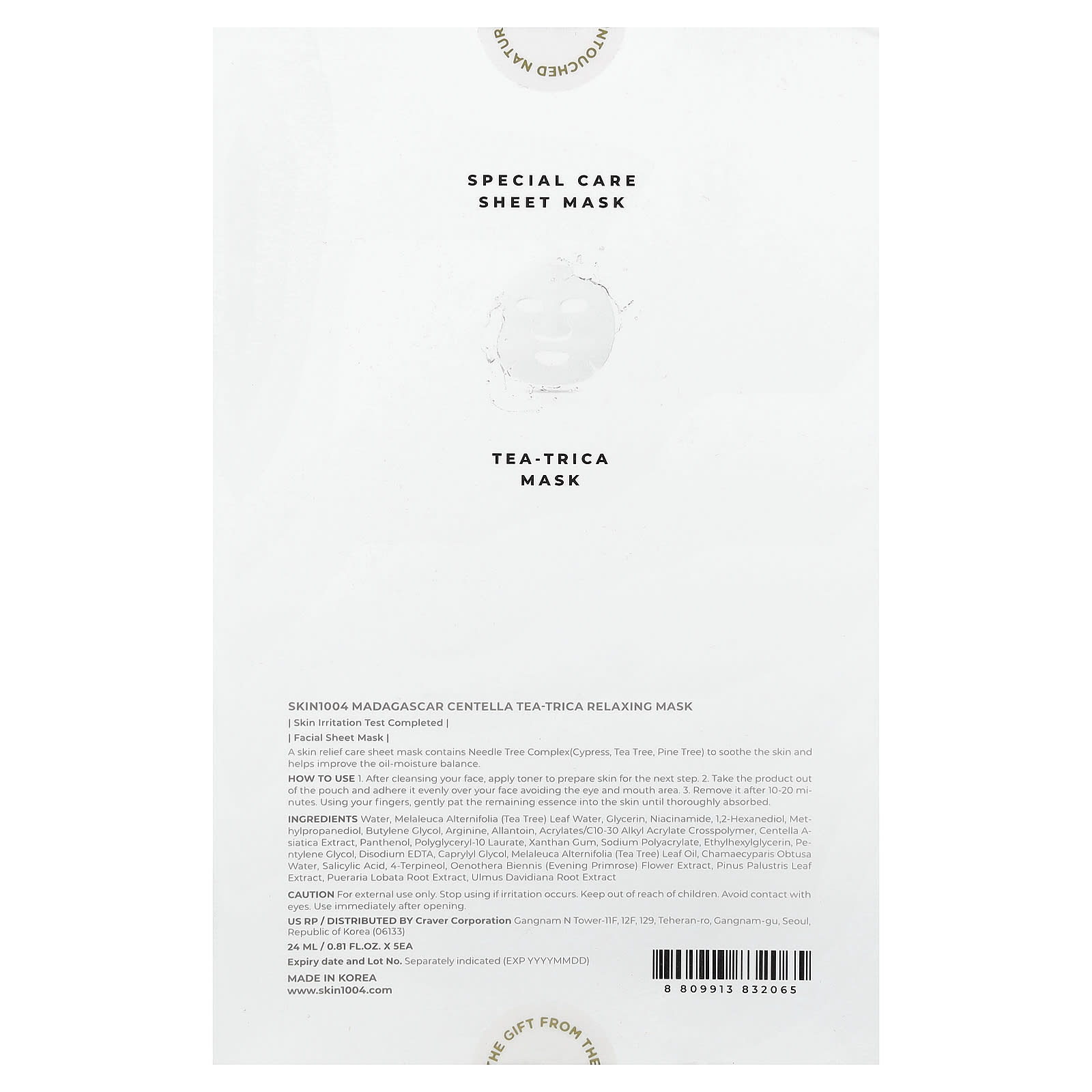 SKIN1004 Madagascar Centella Máscara de Beleza Relaxante Tea-Trica 5 Folhas 24 ml (081 fl oz) Cada – SKIN1004 Beleza Máscaras Faciais de Beleza Máscaras Faciais Máscaras em folha K-Beauty.