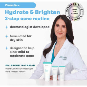 Tratamento avançado da acne Proactiv+ em 3 etapas Sabonete facial com ácido salicílico, tratamento minimizador de poros com peróxido de benzoíla e hidratante hidratante com ácido salicílico – Kit completo de cuidados com a pele para acne por 30 dias – PELE CLARA NÃO PRECISA SIGNIFICAR PELE SECA: se o sabonete facial para acne está deixando sua pele seca ou opaca, o Proactiv foi feito especificamente pensando em você. Este sistema de tratamento da acne evita crises e promove uma pele brilhante e saudável. – VOCÊ PRECISA DE MAIS DO QUE UM ADESIVO PARA ESPINHAS: O Proactiv+ é um tratamento poderoso e abrangente para acne que refresca a pele, remove impurezas e ajuda a prevenir futuras erupções cutâneas. – ILUMINE SUA PELE: Nosso tratamento hidratante que aperfeiçoa a tez com ácido salicílico é formulado com uma mistura botânica de clareamento e um complexo hidratante para manter sua pele ultra-hidratada. – ADEQUADO PARA TODAS AS IDADES E TIPOS DE PELE: O kit de 3 etapas da Proactiv oferece o mesmo cuidado poderoso para a pele de adolescentes e adultos. – DA EMPRESA QUE INICIOU UMA REVOLUÇÃO NO CUIDADO DA PELE: Projetado especificamente para peles com tendência acneica, o Proactiv combina peróxido de benzoíla para atacar bactérias causadoras de acne e ácido salicílico para esfoliar a pele com um complexo hidratante para ajudar a hidratar.