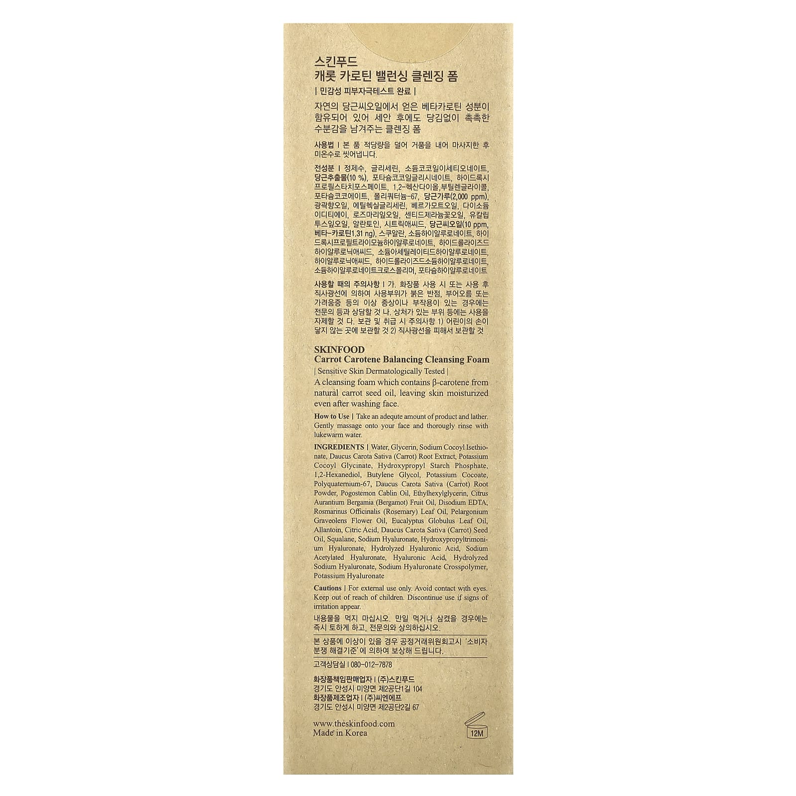 SKINFOOD Carrot Carotene Espuma de Limpeza Balanceadora 150 ml (507 fl oz) – SKINFOOD Beleza Limpeza Facial Sabonetes Faciais Limpeza facial K-Beauty.