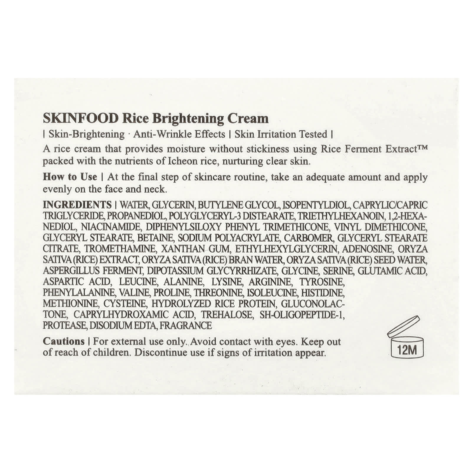 SKINFOOD Creme Iluminador de Arroz 60 ml (202 fl oz) – SKINFOOD Beleza Hidratantes Faciais e Cremes Hidratantes e Cremes K-Beauty.