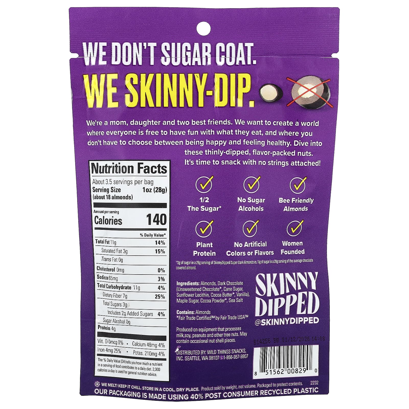 SkinnyDipped Amêndoas Super Amargas + Sal Marinho 99 g (35 oz) – SkinnyDipped Alimentos Petiscos e lanches Castanhas e sementes Amêndoas.