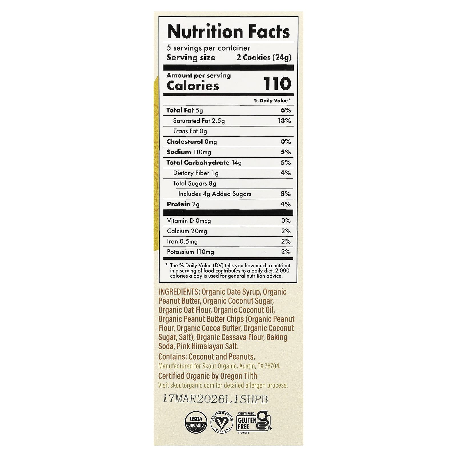Skout Organic Biscoitos Macios Manteiga de Amendoim 5 Sachês 2 Biscoitos (24 g) Cada – Skout Organic Alimentos Petiscos e lanches Cookies.