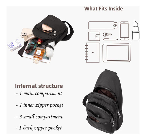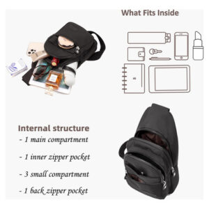 Mochilas casuais YAZEKOUS, bolsa tiracolo para mulheres O pacote inclui: 1 mochila pequena feminina Nonly Cor: preta Tamanho: 6,7 x 4,3 x 11,8 polegadas (comprimento x largura x altura) Procurando uma bolsa estilingue versátil e elegante? Não procure mais, nossas pochetes tipo estilingue. Feitas de náilon de alta qualidade, essas embalagens são projetadas especificamente para transportar seus itens essenciais quando você estiver em trânsito. Espaçosos e versáteis, eles também são ótimos para presentear. – Estilo versátil: dimensões: 6,7 x 4,3 x 11,8 polegadas, peso: 0,18 kg. Esta bolsa tipo estilingue YAZEKOUS é uma bolsa de viagem tiracolo para mulheres, tornando-a adequada para uso diário ou viagens, atividades ao ar livre, como caminhadas, ciclismo ou viagens. Conveniência sem usar as mãos. Com a pochete tipo estilingue, você terá fácil acesso ao telefone, carteira e outros itens essenciais, mantendo as mãos livres. – Design, a mochila casual, alça ajustável e leve torna esta pequena bolsa confortável de usar. Horas a fio. – Qualidade, a bolsa tipo estilingue para mulheres é feita de náilon resistente à água de alta qualidade, esta bolsa é feita para durar e resiste ao desgaste diário. – Tamanho: a mochila tipo estilingue tem vários bolsos de tamanhos variados, facilitando a organização de tudo. Esta bolsa tipo estilingue é pequena, mas espaçosa o suficiente para guardar todos os itens essenciais.
