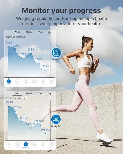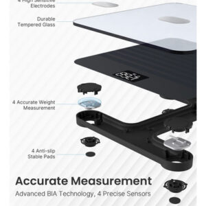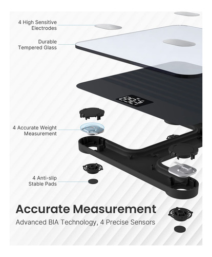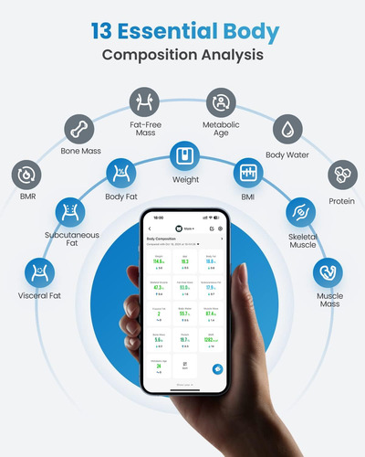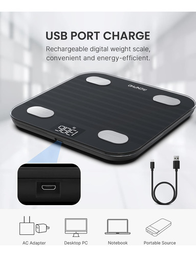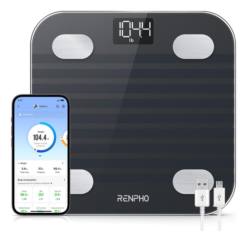 Balança inteligente recarregável RENPHO para peso corporal, 13 monitores eletrônicos de composição corporal sincronizados com o aplicativo, balanças de banheiro digitais Bluetooth, Elis 1, preta, 396 libras — Conveniente de usar: em um mundo onde as baterias são caras e difíceis de substituir, boom, balanças recarregáveis. A balança de gordura corporal RENPHO adota carregamento USB e uma bateria embutida, que pode ser usada por um longo tempo quando está totalmente carregada. O display LED transparente facilita a leitura de sua medição de peso em qualquer luz e em qualquer lugar. – Usuários ilimitados: a balança de peso corporal RENPHO cria perfis de usuário ilimitados, compartilhe uma balança inteligente com familiares e amigos. Adequado para entusiastas do fitness de lazer e fisiculturistas, o modo bebê pode registrar o peso de bebês e animais de estimação. – Medição precisa: a balança digital RENPHO mede 13 medidas essenciais da composição corporal, incluindo peso, gordura corporal, IMC, idade metabólica, água corporal, metabolismo basal, peso corporal sem gordura, massa óssea, gordura subcutânea, proteína, gordura visceral, músculo esquelético e massa muscular. A capacidade máxima da balança corporal precisa é de 396 libras/180 kg, que possui 4 sensores de alta precisão que medem em incrementos de 0,2 lb./0,05 kg para garantir a precisão de cada valor. – Rastreamento inteligente: a balança Bluetooth RENPHO usa aplicativos inteligentes para definir metas, salvar dados históricos e acompanhar seu progresso diário, semanal e mensal, monitorar de forma inteligente o progresso da perda de peso e as mudanças de condicionamento físico. O aplicativo Renpho Health também permite que você compartilhe dados e tendências com pessoas ilimitadas para motivação. – Interação com vários programas: a balança digital de banheiro pode gerenciar dados corporais por meio do aplicativo Renpho Health e sincronizar outros aplicativos de condicionamento físico, como Apple Health, Fitbit e Samsung Health. A Renpho já tem milhões de usuários globais felizes.