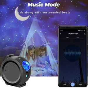Vários modos de iluminação: botão de modo de projeção, toque curto para alternar o ritmo da música – 7 cores de batida-7-cores respiração-7-cores mudança gradual 4 modos de lâmpada de projeção; Além disso, há um botão de modo de luz noturna, você pode mudar de cor, etc.