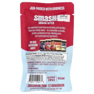 Smash Foods Snack Bites Manteiga de Amendoim Choc e Geleia de Framboesa 5 Bites 50 g (18 oz) – Smash Foods Alimentos Petiscos e lanches Mix de snacks.