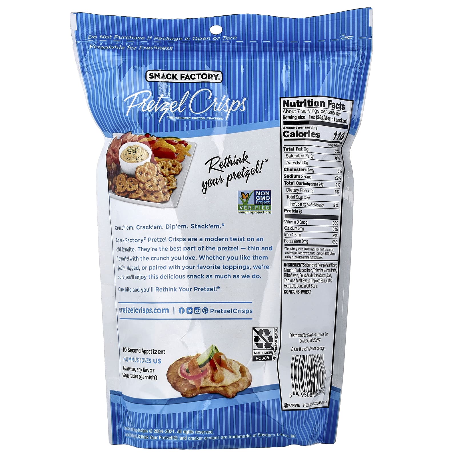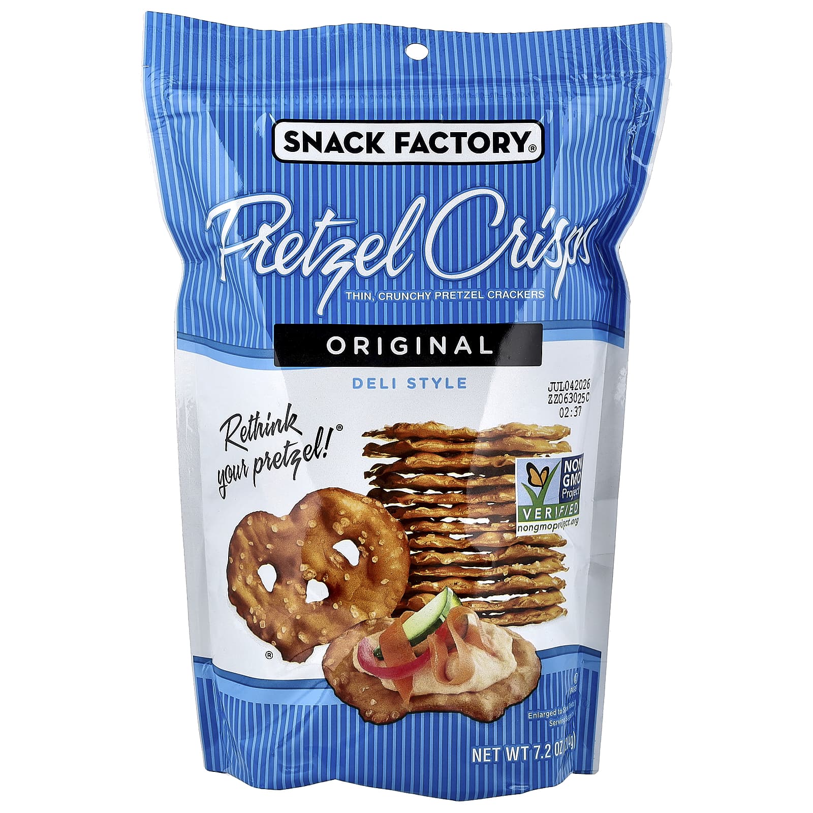 Snack Factory Pretzel Crisps Original Estilo Deli 204 g (72 oz) – Snack Factory Alimentos Petiscos e lanches Pretzels.