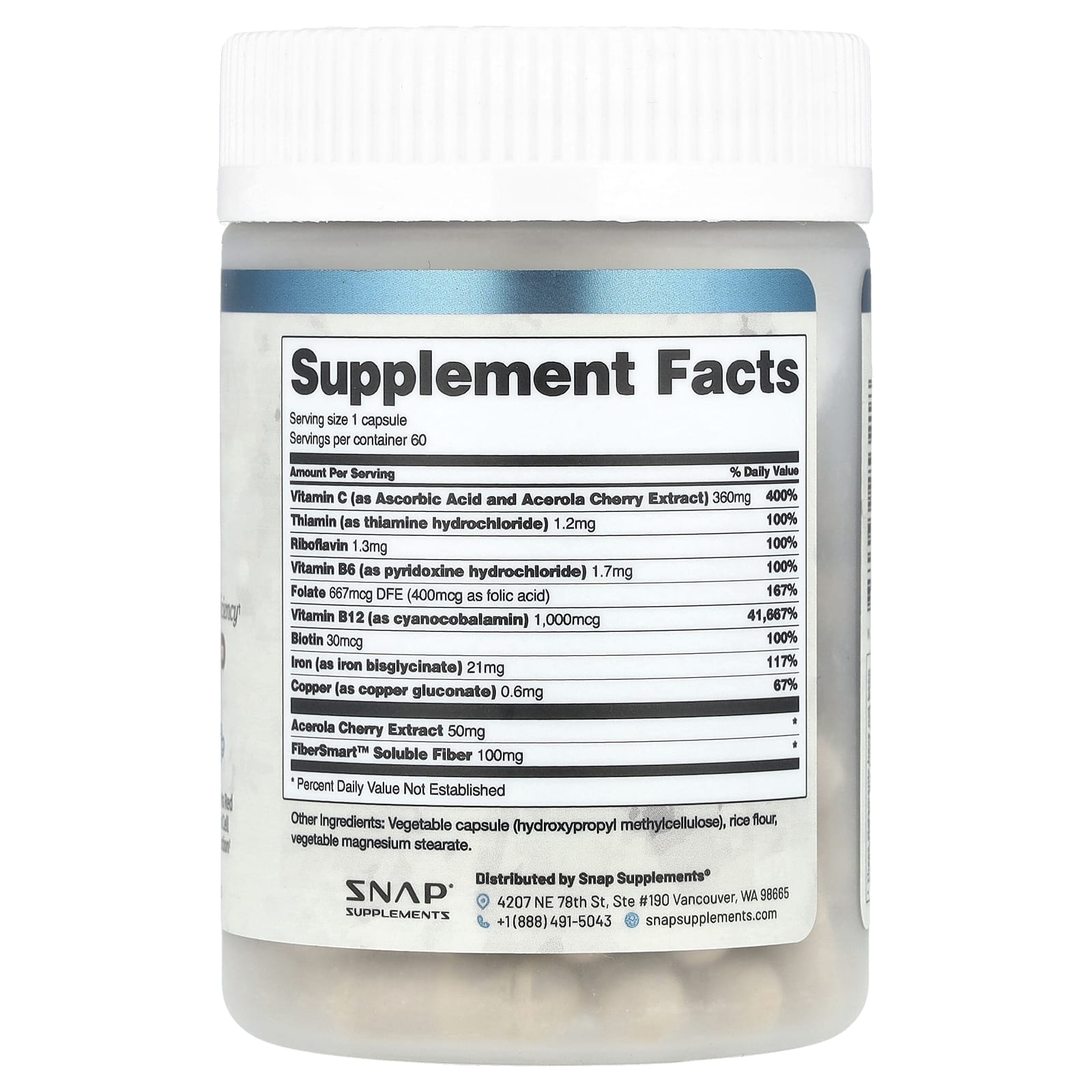 Snap Supplements Construtor de Ferro 60 Cápsulas – Snap Supplements Suplementos Minerais Ferro Bisglicinato de Ferro.