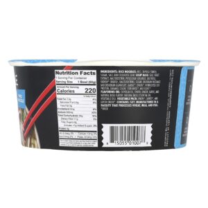 Macarrão de Arroz: Arroz, amido de tapioca, açúcar, sal, e goma de celulose. Base da Sopa: Sal, extrato de levedura, maltodextrina, cloreto de potássio, dextrose, rabanete* (rabanete, maltodextrina), açúcar, inosinato dissódico e guanilato dissódico, alho*, cebola*, proteína de soja hidrolisada, corante caramelo, anis-estrelado*, e cravo*. Óleo Sabor: Óleo de soja, cebola, gengibre, alho, e sabor natural de manjericão (óleo essencial de manjericão natural, óleo vegetal). Pacote de Vegetais: Cebola*, cenoura*, e cebolinha verde*.