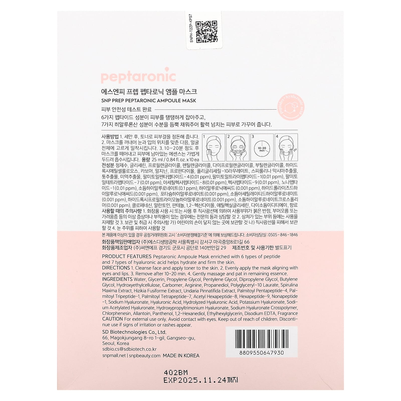 SNP Máscara de Beleza com Ampola Peptarônica 10 Folhas 25 ml (084 fl oz) Cada – SNP Beleza Máscaras Faciais de Beleza Máscaras Faciais Máscaras em folha K-Beauty.