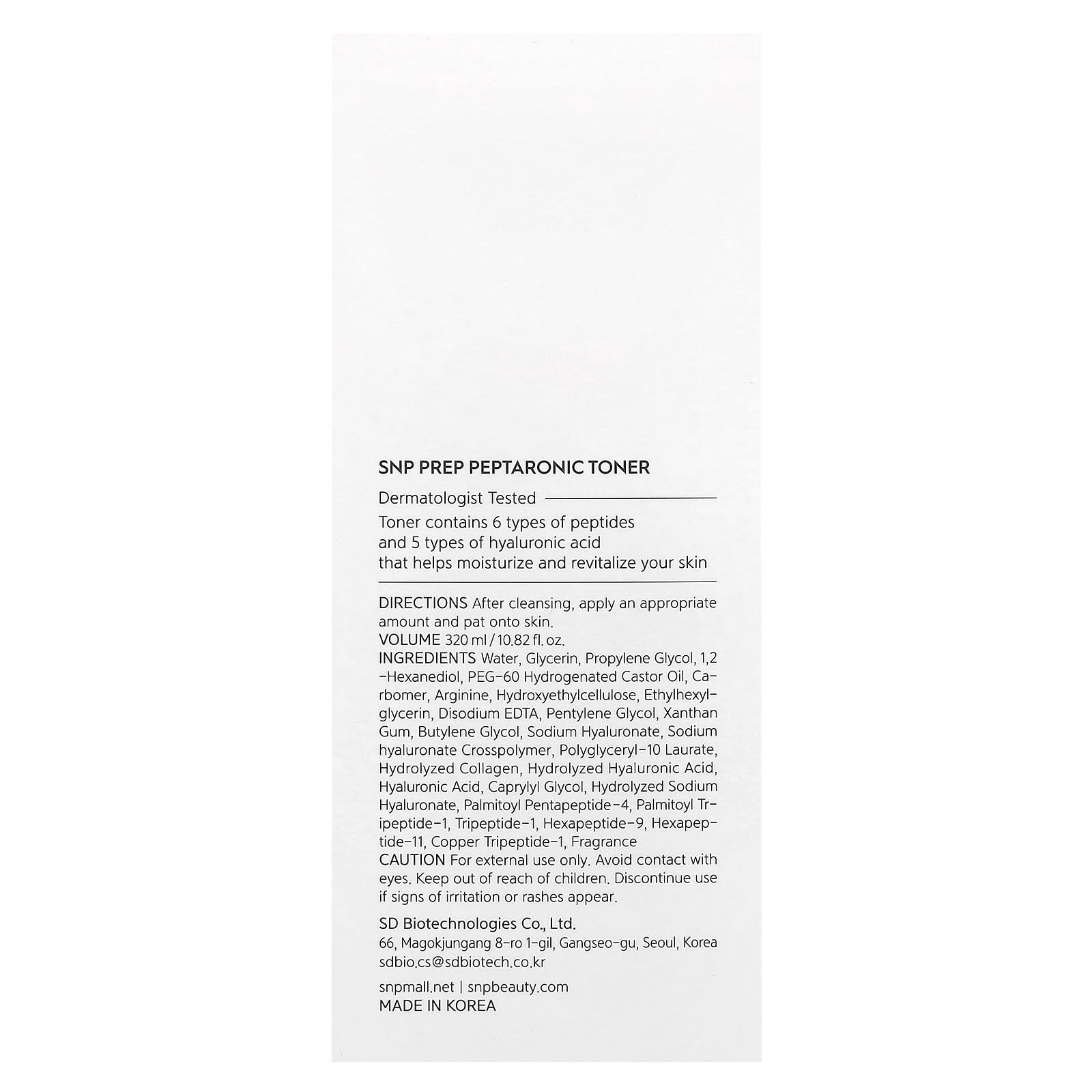 SNP Prep Peptaronic Peptídeos e Ácido Hialurônico Tônico 320 ml (1082 fl oz) – SNP Beleza Limpeza Facial Loções tônicas Tônicos faciais K-Beauty.