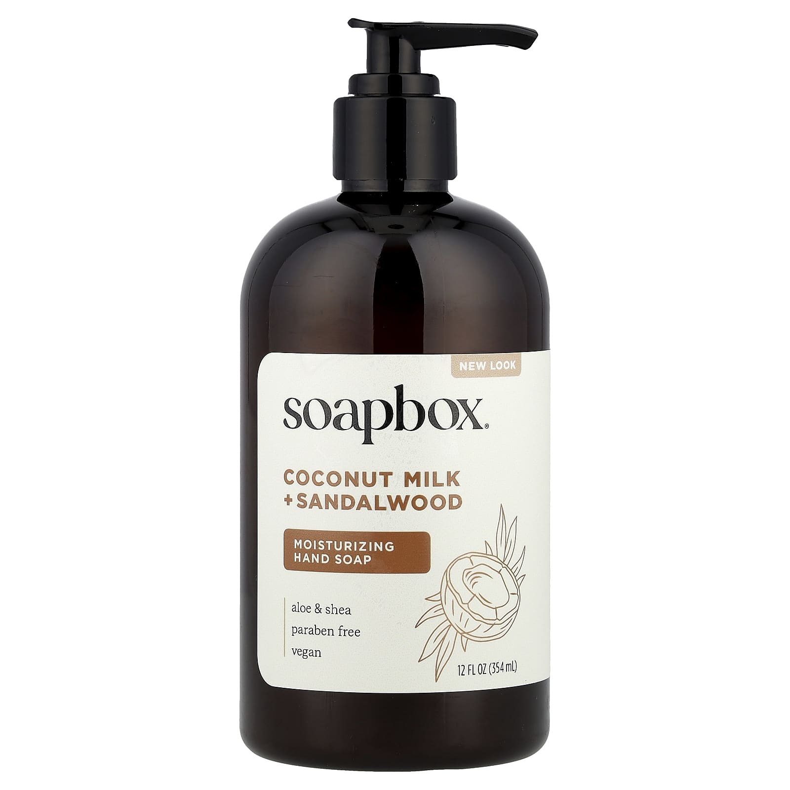 Soapbox Sabonete Líquido para as Mãos com Aloe e Karité Leite de Coco e Sândalo 354 ml (12 fl oz) – Soapbox Banho e Cuidados Pessoais Banho Sabão para as mãos.