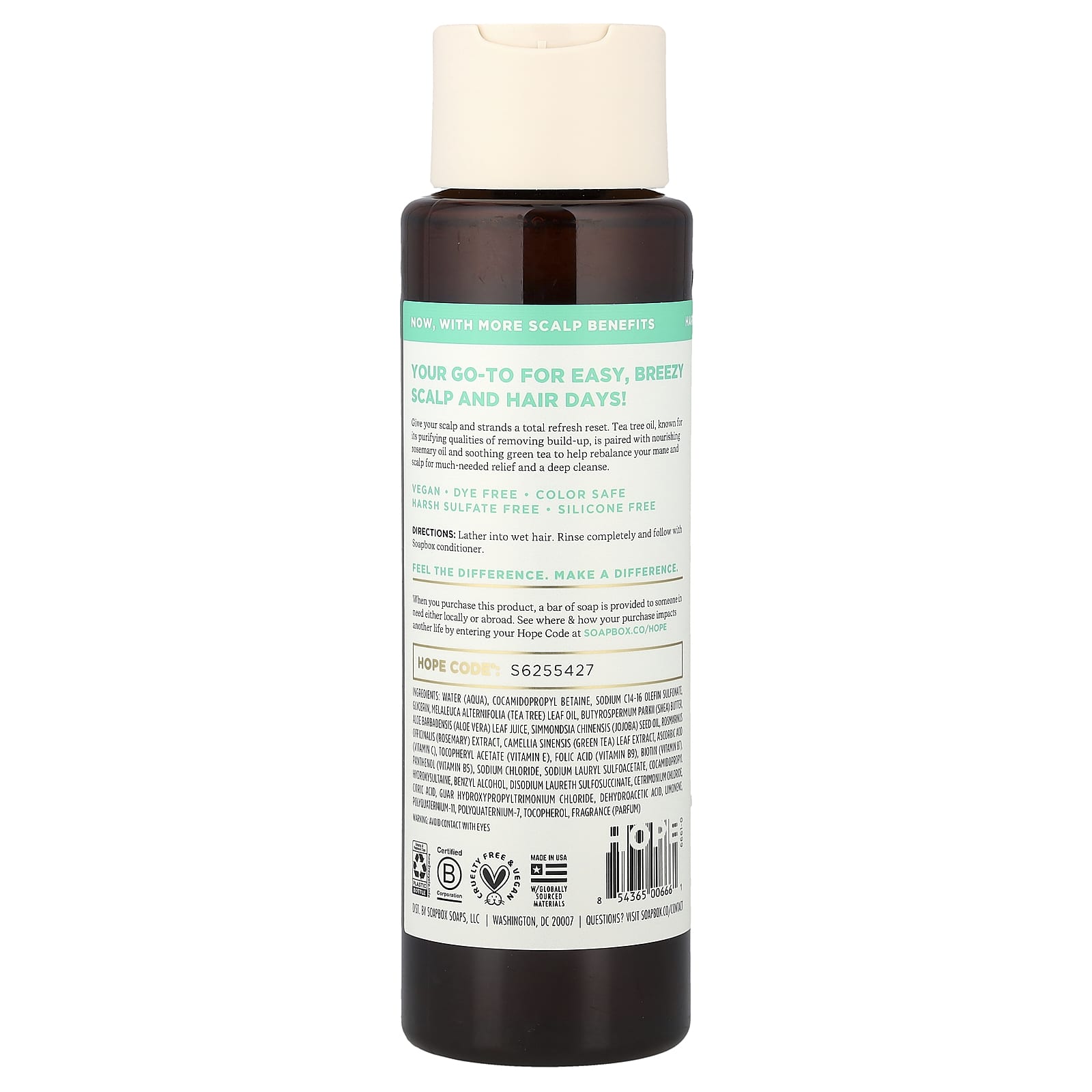 Soapbox Shampoo para Equilíbrio do Couro Cabeludo Melaleuca e Menta 473 ml (16 fl oz) – Soapbox Banho e Cuidados Pessoais Cabelos Shampoo Beleza Beleza por Ingrediente Cuidado para a pele com Vitamina E.