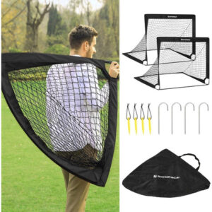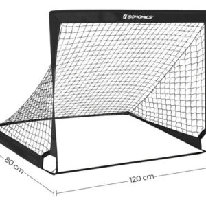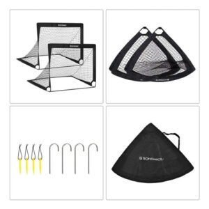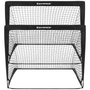 Gols de futebol infantil SONGMICS para quintal, equipamento de treinamento com redes de futebol portáteis de 4×3 pés, gol de futebol infantil com bolsa de transporte, para campo, preto USZQ122B02 – [Leve-os para qualquer lugar] Aproveite as férias na praia? Passar fins de semana no parque? Onde quer que você vá, pegue este conjunto de gols de futebol leves e dobráveis e comece a diversão para seus filhos – [Cada detalhe importa] Feitas de varas de fibra de vidro tenazes, tecido Oxford durável e malha de poliéster com costura fina, essas redes de futebol podem suportar brincadeiras indisciplinadas de crianças – [Estabilidade confiável] Apoiadas por hastes de fibra de vidro e protegidas por estacas em forma de J, essas redes de futebol infantis podem ser firmemente fixado no chão, para que uma partida intensiva não seja interrompida pela capotagem dos gols – [Pronto em um momento] As crianças mal podem esperar para começar a jogar? Não tem problema. Basta abrir o pacote, retirar todas as peças e montar os gols de futebol com facilidade, então está pronto para chutar uma bola – [O que você receberá] Conjunto de 2 gols de futebol com uma bolsa de transporte e estacas. Coloque-os no seu quintal e deixe as crianças correrem soltas no campo!