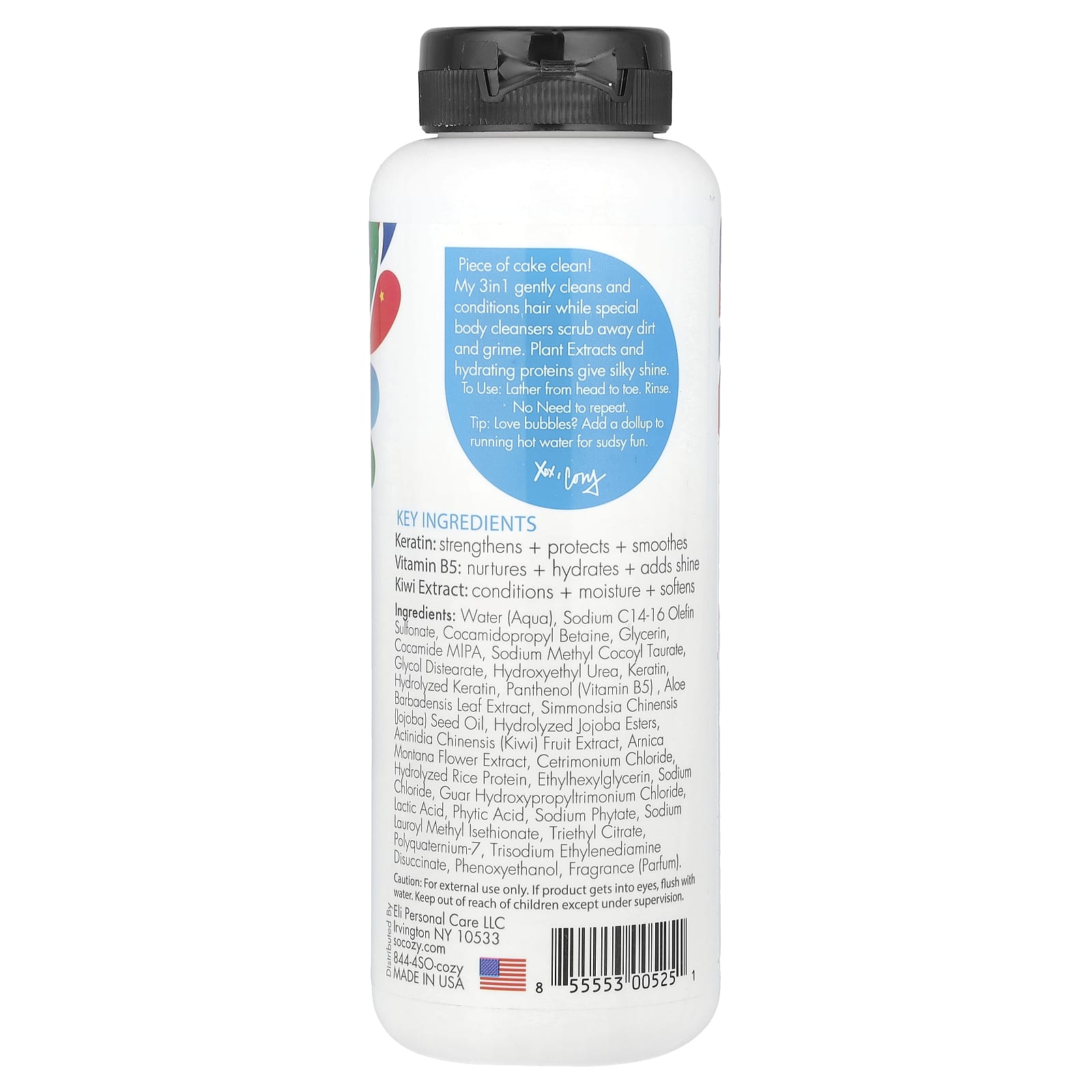 Pedaço de bolo limpo! Meu 3 em 1 limpa e condiciona suavemente o cabelo, enquanto produtos de limpeza especiais para o corpo removem a sujeira e a sujeira. Extratos Vegetais e proteínas hidratantes proporcionam um brilho sedoso.
