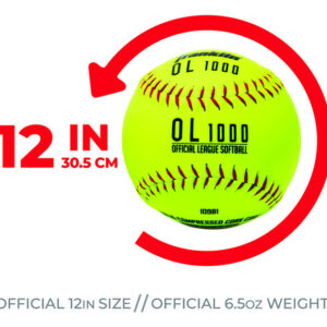 Franklin Sports Official League 12" Practice Softball apresenta uma capa sintética com um núcleo que é uma combinação de borracha/cortiça. Cor amarela vibrante para melhor visibilidade. Tamanho e peso oficiais.