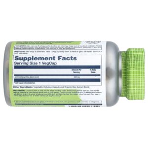 Cápsula de celulose vegetal e mistura de extrato de arroz orgânico.
