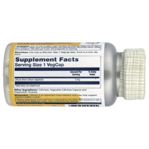 Solaray Aspartato de Lítio 5 mg 100 VegCaps – Solaray Suplementos Minerais Lítio.