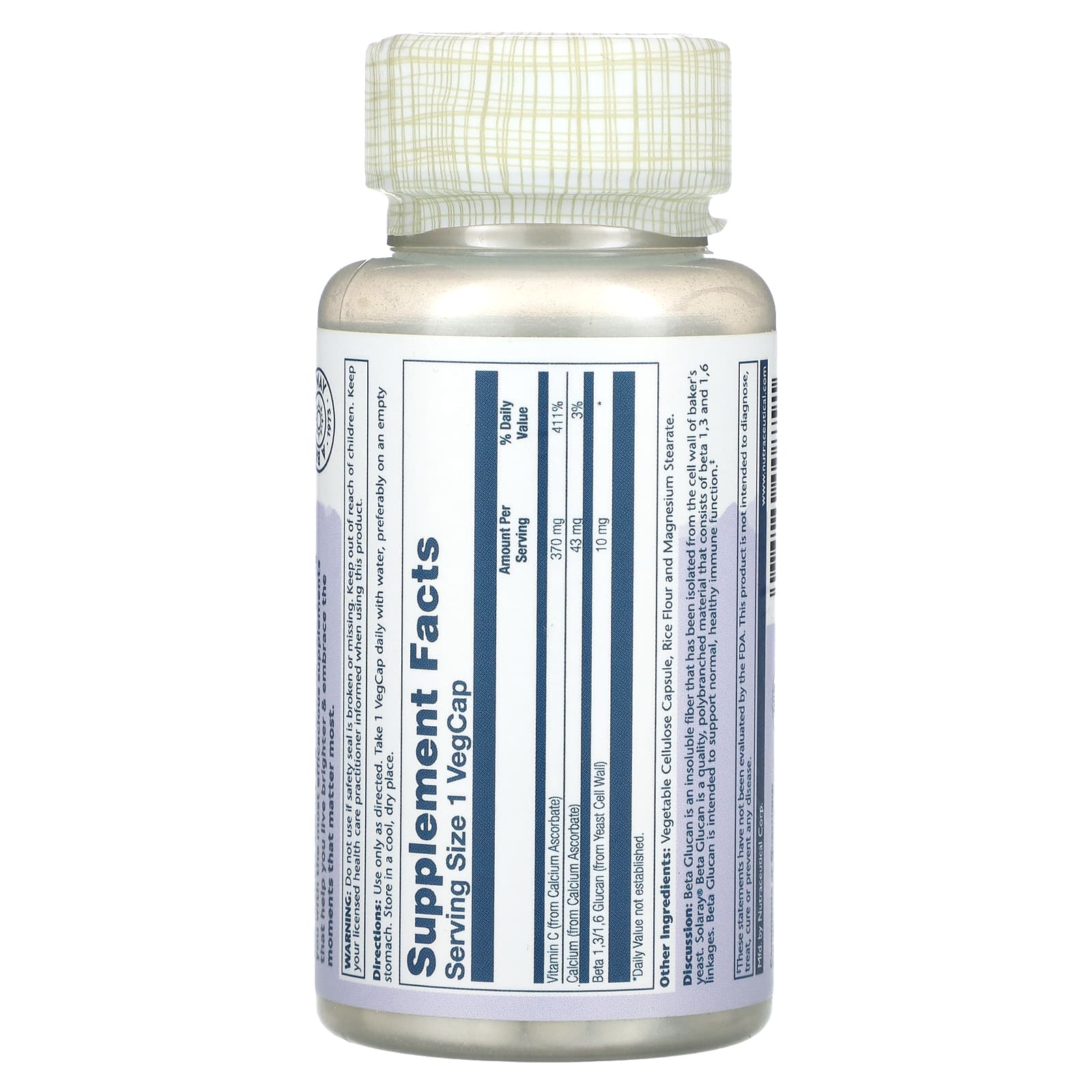 Solaray Betaglucano com Vitamina C 60 VegCaps – Solaray Suplementos Saúde Intestinal Betaglucano.