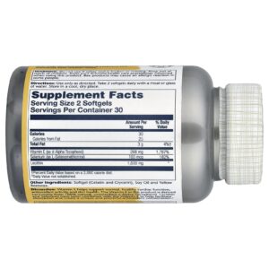Análise: A Vitamina E ajuda a promover a função cardíaca normal e saudável, a atividade antioxidante e a saúde da pele. A Vitamina E neste produto é derivada exclusivamente de Dextroalfatocoferol 100% natural e não esterificado. Lecitina e Selênio foram combinados com Vitamina E para ajudar a facilitar a absorção e criar uma combinação antioxidante única e poderosa.