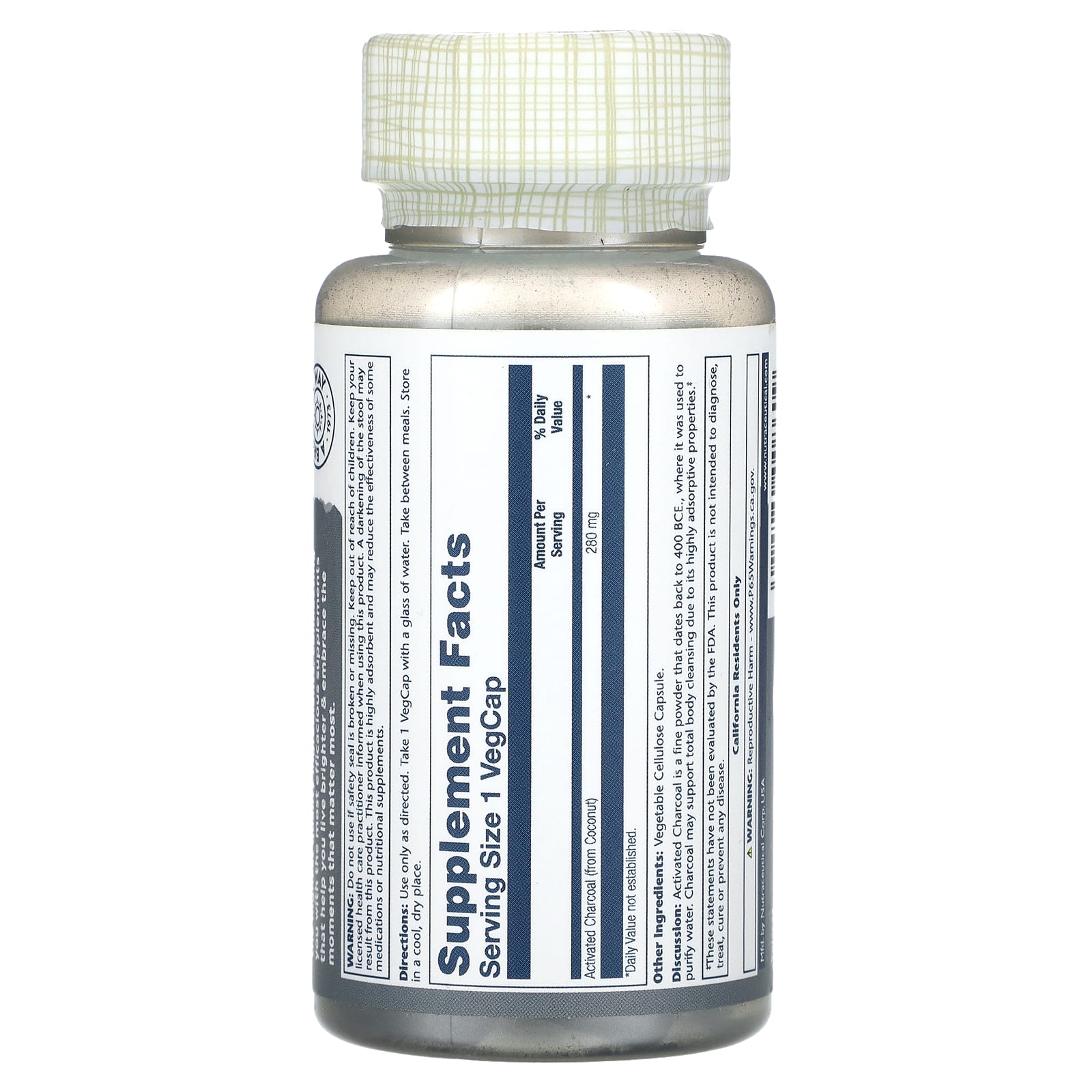 Solaray Carvão Ativado 280 mg 90 VegCaps – Solaray Suplementos Saúde Intestinal Carvão Ativado.