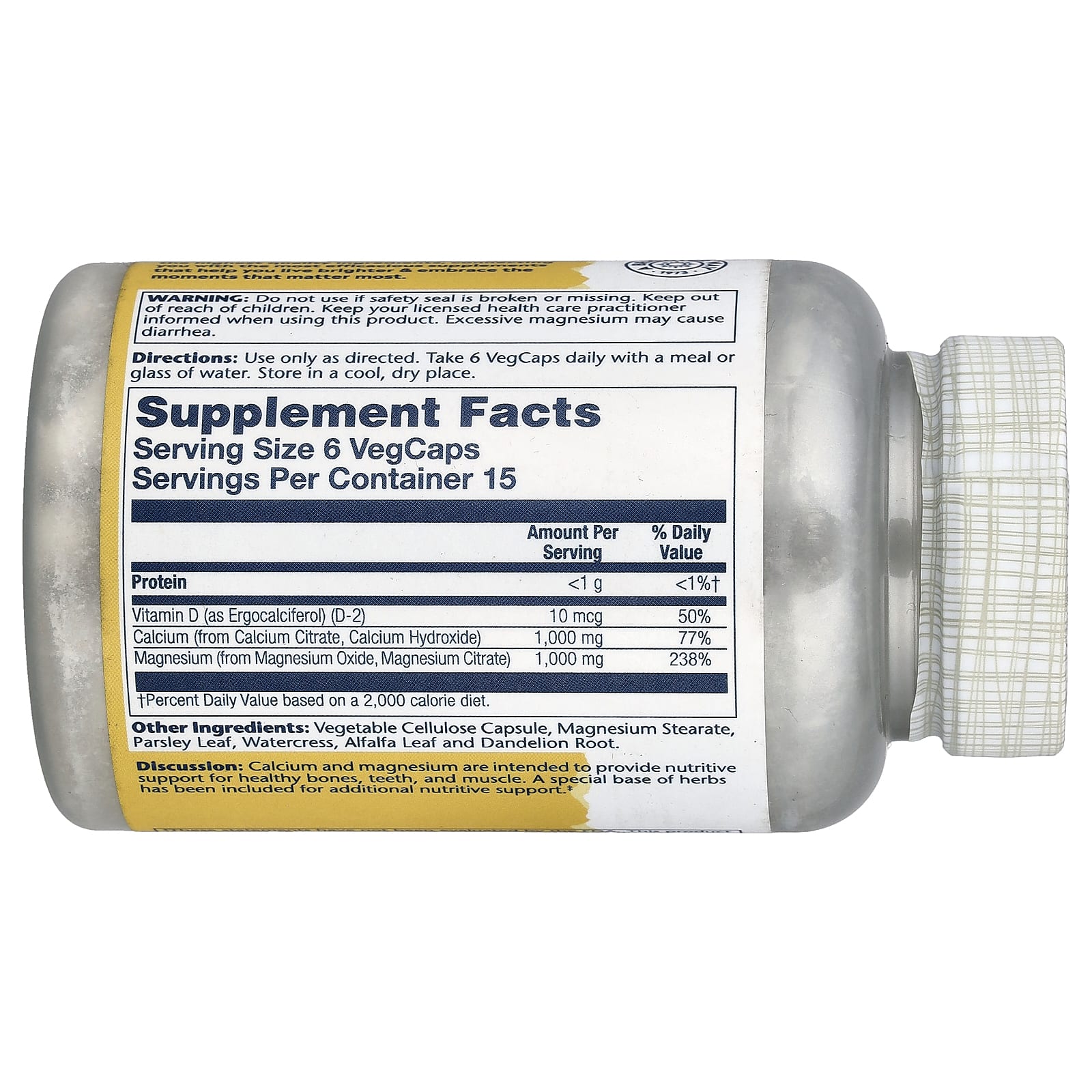 O cálcio e o magnésio se destinam a fornecer suporte nutritivo para ossos, dentes e músculos saudáveis. Uma base especial de ervas foi incluída para suporte nutritivo adicional.