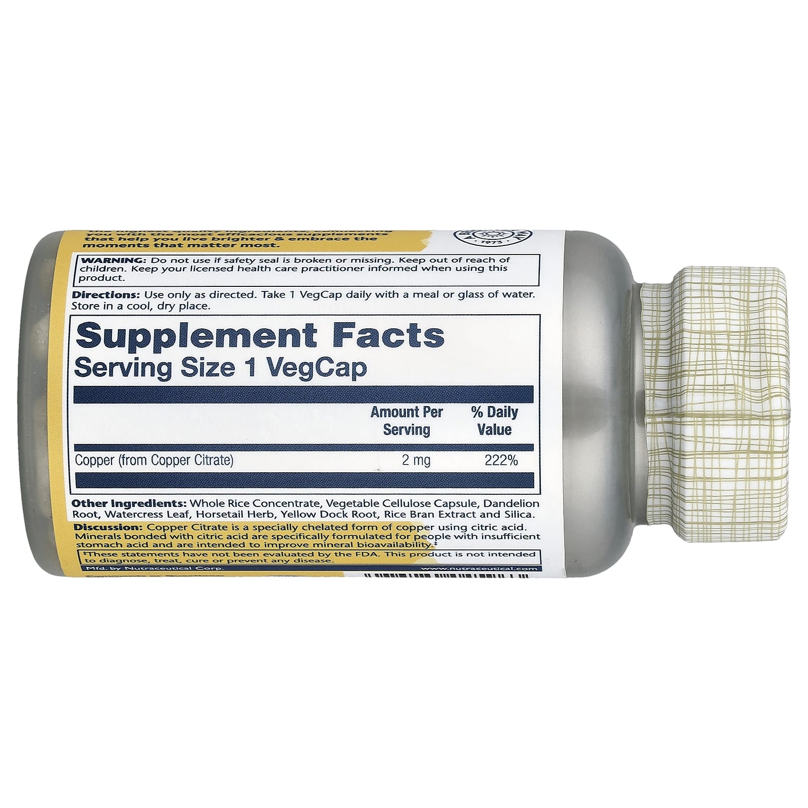 Solaray Citrato de Cobre 2 mg 60 VegCaps – Solaray Suplementos Minerais Cobre.