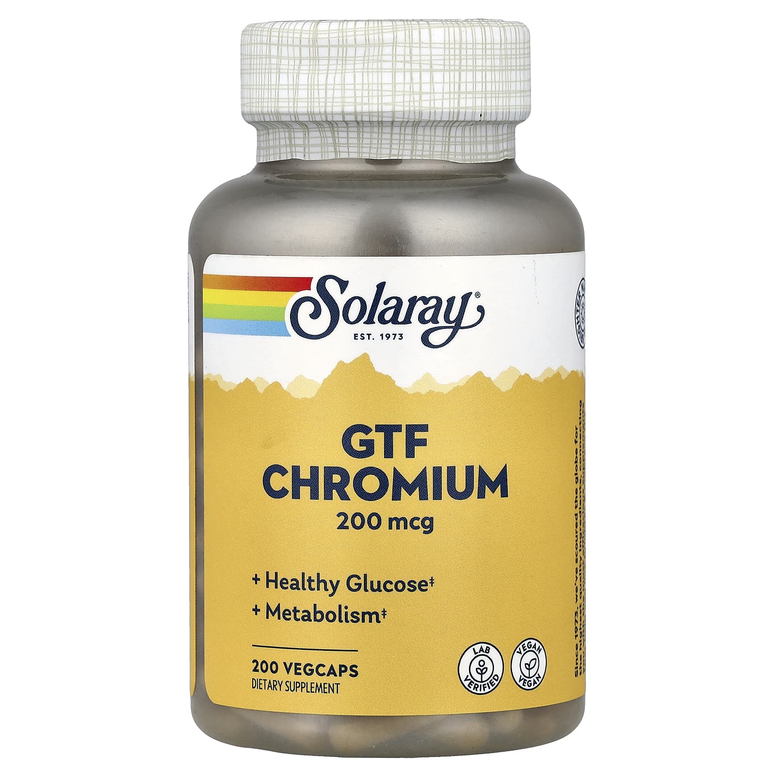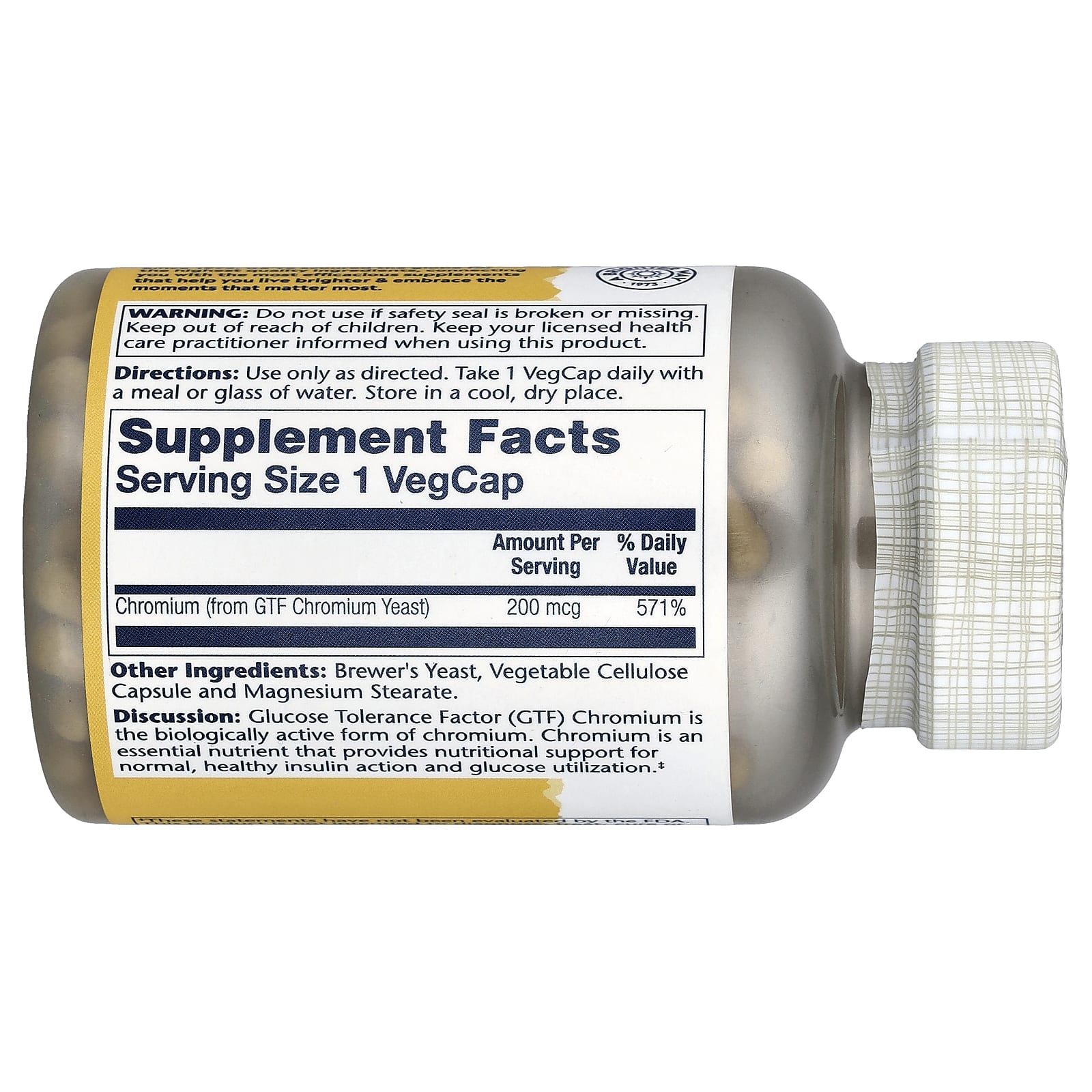 Solaray Cromo FTG 200 mcg 200 Cápsulas VegCaps – Solaray Suplementos Minerais Cromo.