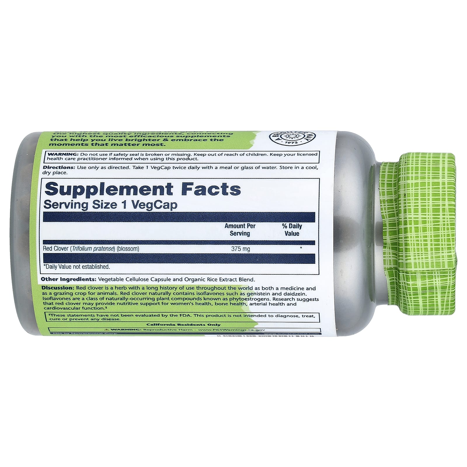 Solaray Ervas Verdadeiras Trevo Vermelho 375 mg 100 VegCaps – Solaray Suplementos Ervas Trevo Vermelho.