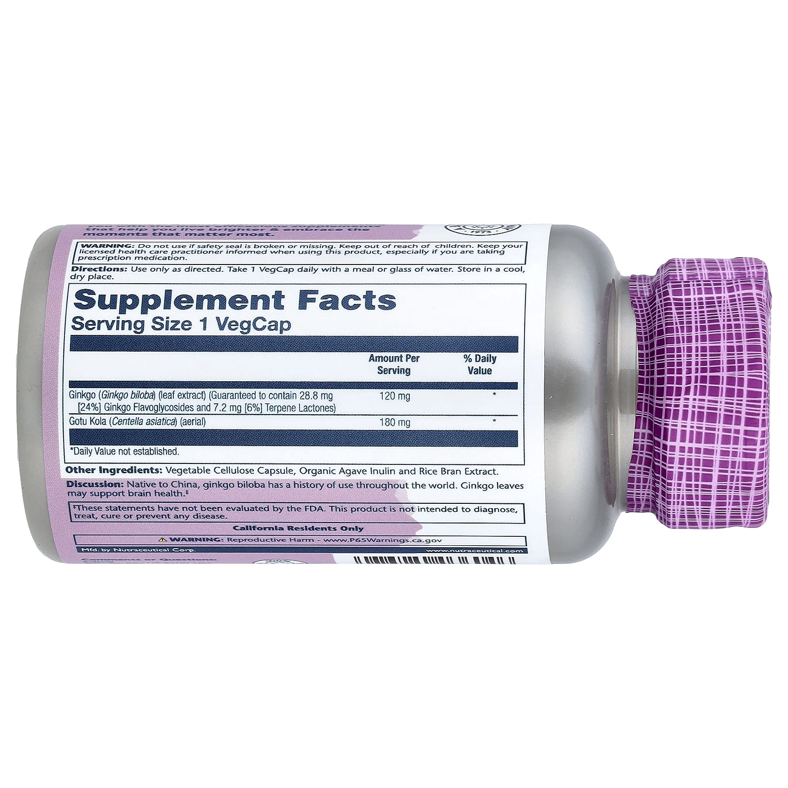 Solaray Extratos Vitais Ginkgo Biloba com Gotu Kola 60 VegCaps – Solaray Suplementos Ervas Ginkgo Biloba.