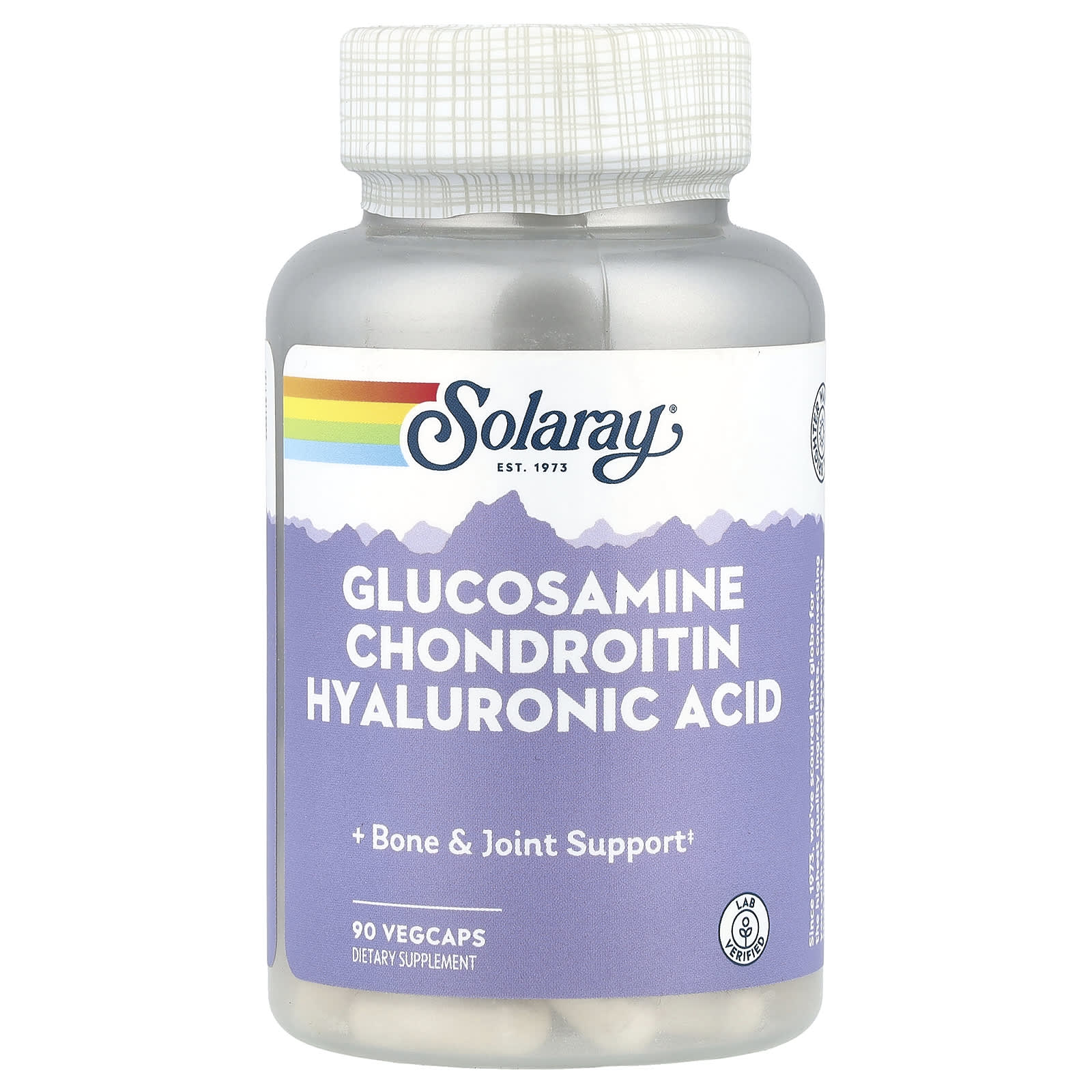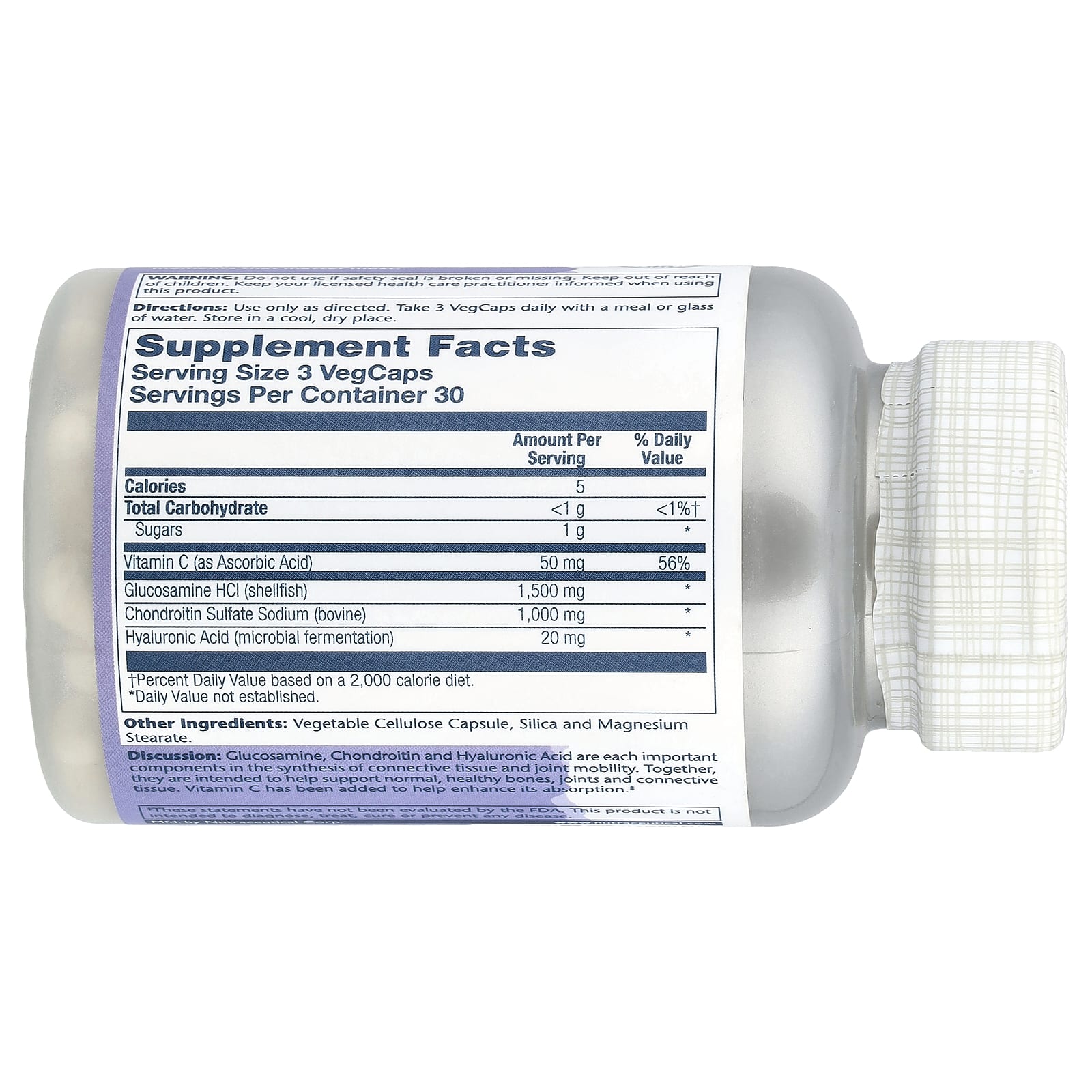 Solaray Glicosamina Condroitina e Ácido Hialurônico 90 VegCaps – Solaray Suplementos Ossos, Articulações e Cartilagem Fórmulas de Glucosamina.