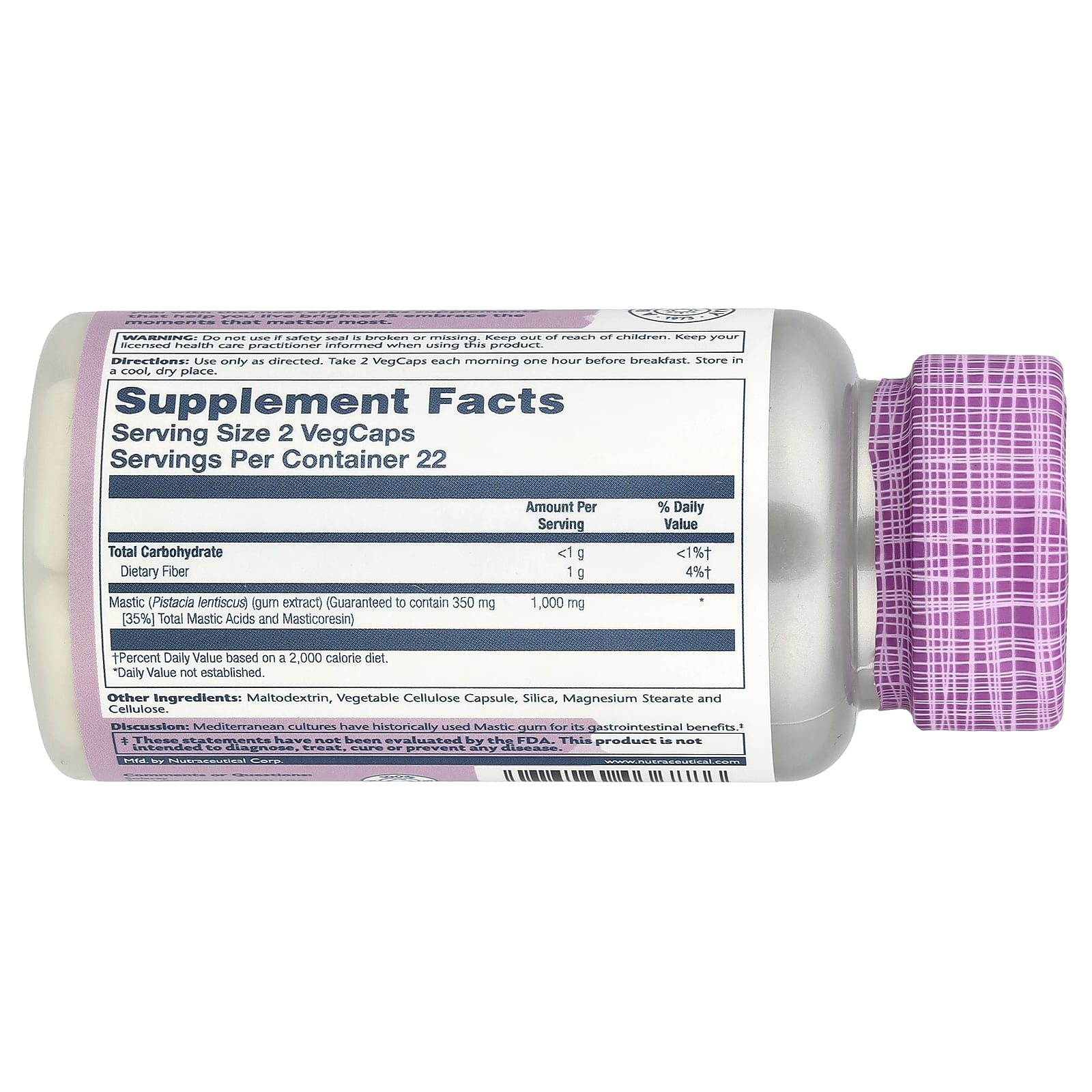 Use somente conforme indicado. Tome duas cápsulas vegetais todas as manhãs, uma hora antes do café da manhã.