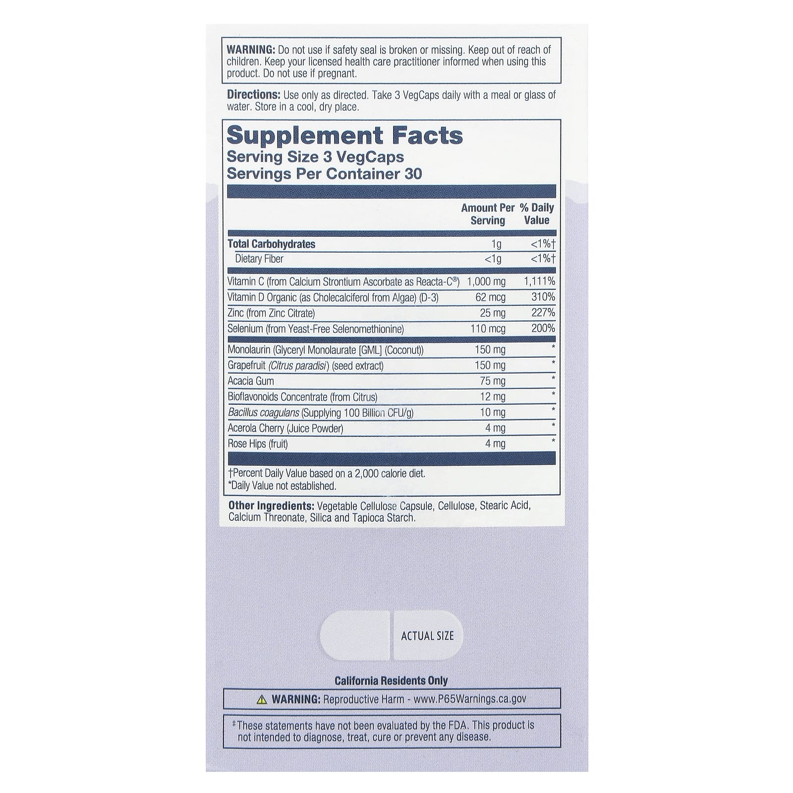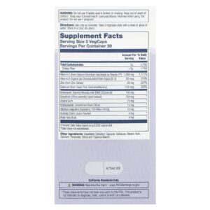Use somente conforme indicado. Tome 3 cápsulas VegCaps diariamente com uma refeição ou um copo de água.