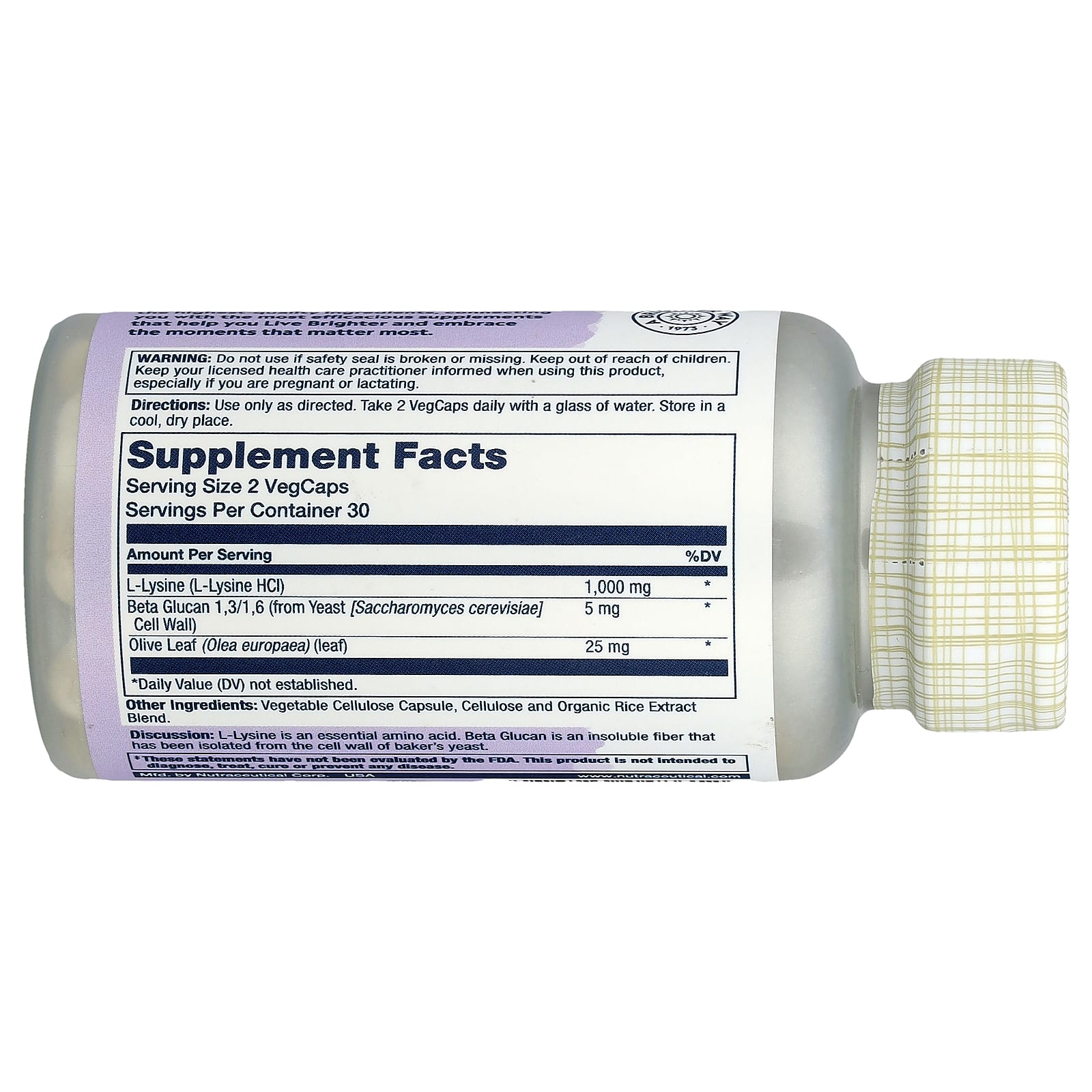 Solaray L-lisina e Betaglucano 60 VegCaps – Solaray Suplementos Aminoácidos Lisina Saúde Gripe e Resfriado.