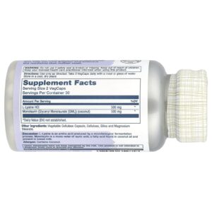 Solaray, Lisina e Monolaurina Proporção 1:1, 60 VegCaps – Solaray Suplementos Aminoácidos Lisina Saúde Auxílio à Imunidade Immune Formulas.