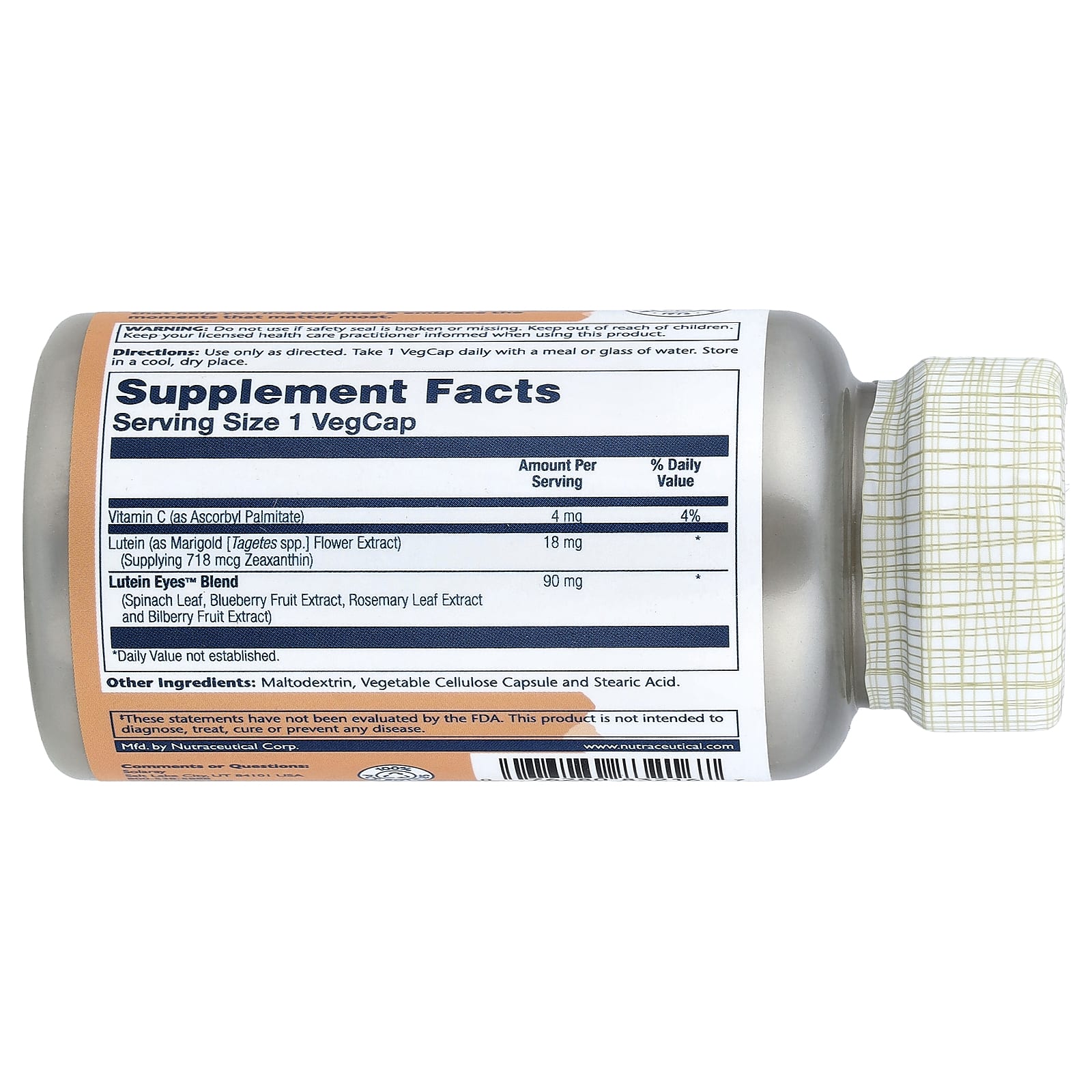 A Luteína para os Olhos da Solaray com 18 mg de luteína por dose é uma maneira fácil de obter esses poderosos nutrientes.E como estamos comprometidos em criar suplementos que funcionem melhor, a Luteína para os Olhos 18 da Solaray também contém vitamina C para um auxílio adicional à saúde dos olhos.