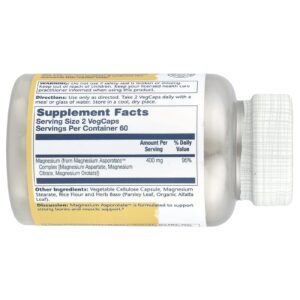 Solaray Magnesium Asporotate™ 120 VegCaps (200 mg por Cápsula) – Solaray Suplementos Minerais Magnésio.