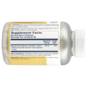 Solaray Magnesium Asporotate™ 180 VegCaps (200 mg por Cápsula)