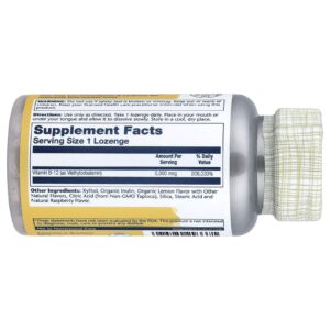 Solaray Methyl B-12 Sabor Limão e Framboesa 5000 mcg 60 Pastilhas – Solaray Suplementos Vitaminas Vitamina B Vitamina B12 (Cobalamina).