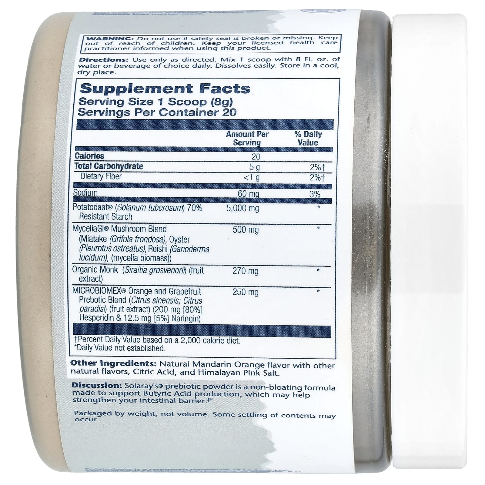 Solaray Mycrobiome® Prebiótico em Pó Cítrico Natural 160 g (564 oz) – Solaray Suplementos Saúde Intestinal Probióticos Prebióticos.