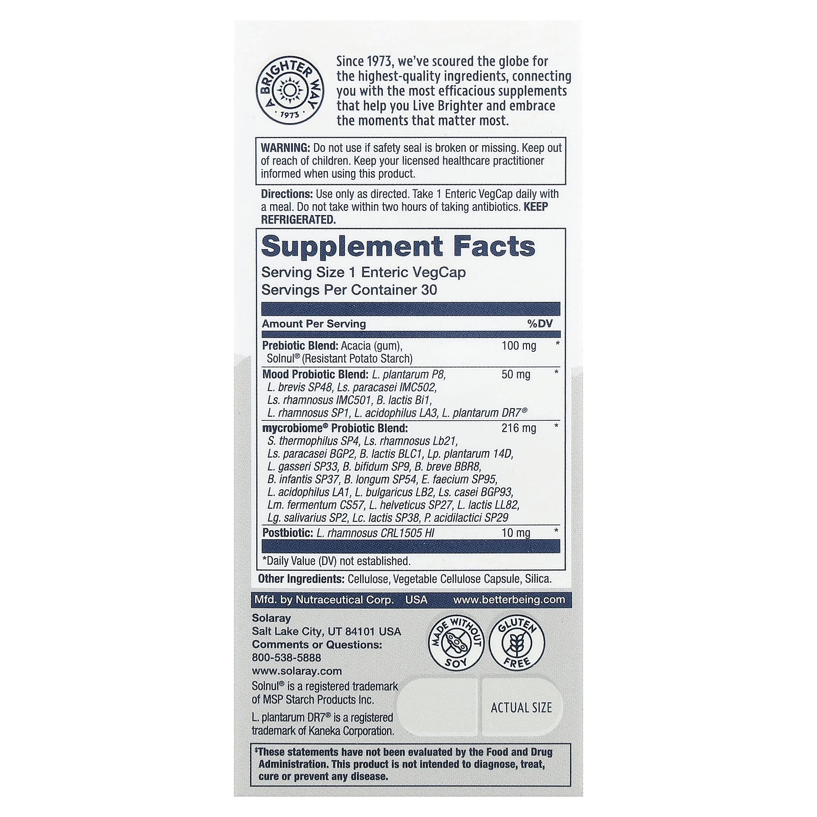 Solaray Mycrobiome® Probiótico Completo Humor 30 VegCaps – Solaray Suplementos Saúde Intestinal Probióticos.