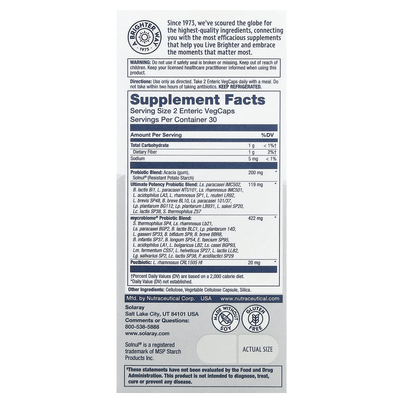∦Contém o dobro de UFCs quando comparado a outros produtos de micróbios da Solaray.