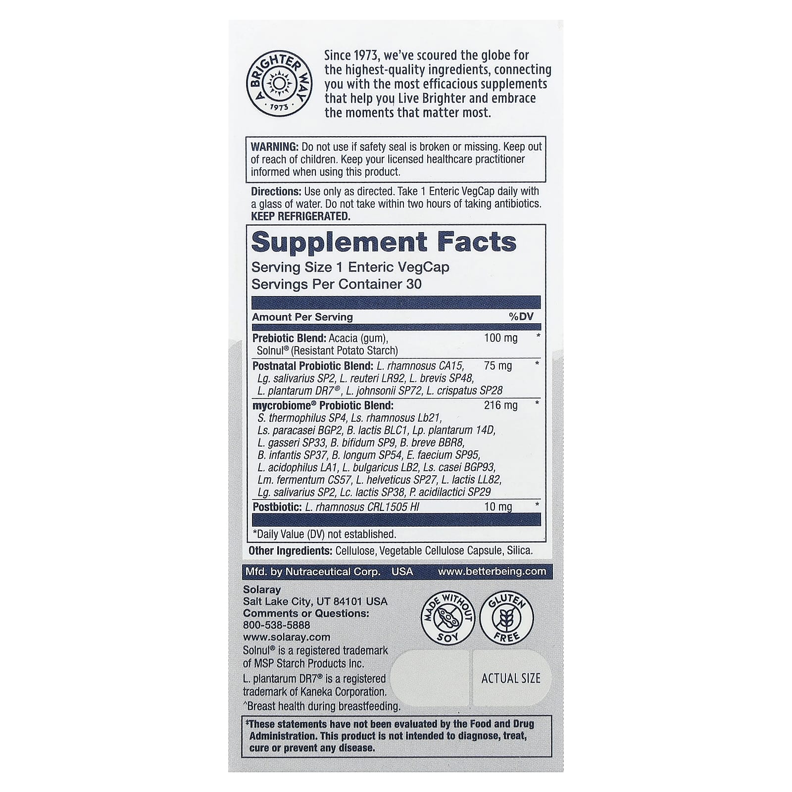 Solaray Mycrobiome® Probiótico Completo Pós-natal 30 VegCaps