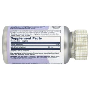 Solaray NAC 600 mg 60 Cápsulas VegCaps – Solaray Suplementos Antioxidantes N-Acetil Cisteína (NAC).